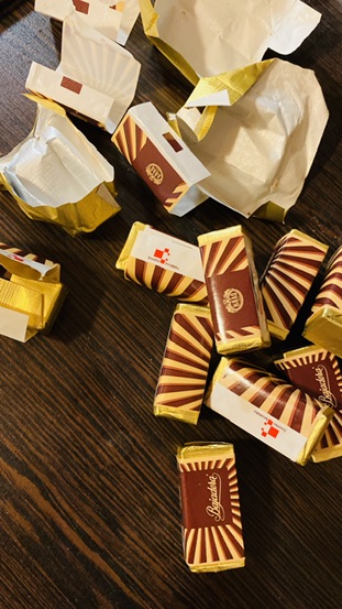 Smjesu staviti u pleh, dodati još malo Bajadera na mjestima gdje nedostaju i staviti peći između 20 i 25 minuta. Vrijeme pečenja ovisi o tome kakva vam je pećnica. Praksa mi je da oko 2ote minute budem u kuhinji i gledam kako napreduje, oko 22 minute vadim brownie van i puštam ga da se malo ohladi.